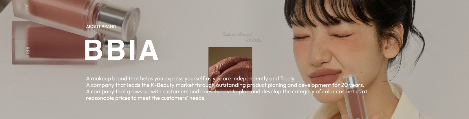BBIA is a Korean makeup brand that empowers you to embrace your individuality with confidence. We develop high-quality products based on innovative and irreplaceable ideas, offering a range of lines with different concepts that cater to any makeup look, inviting you to express yourself with endless possibilities.Whether you love a natural, everyday look or crave a touch of subtle glamour, BBIA’s product lines boast various concepts to help you achieve your desired aesthetic. We’re known for our bestselling L’eau Tint, Last Velvet Lip Tint, and Downy Cheek, all formulated while prioritizing customer safety and sustainable practices.Since 1997, we have been dedicated to providing our customers with a unique and accessible Korean beauty experience. You can now explore BBIA products on Slow Recipe, the perfect platform to discover your next K-beauty favorite.