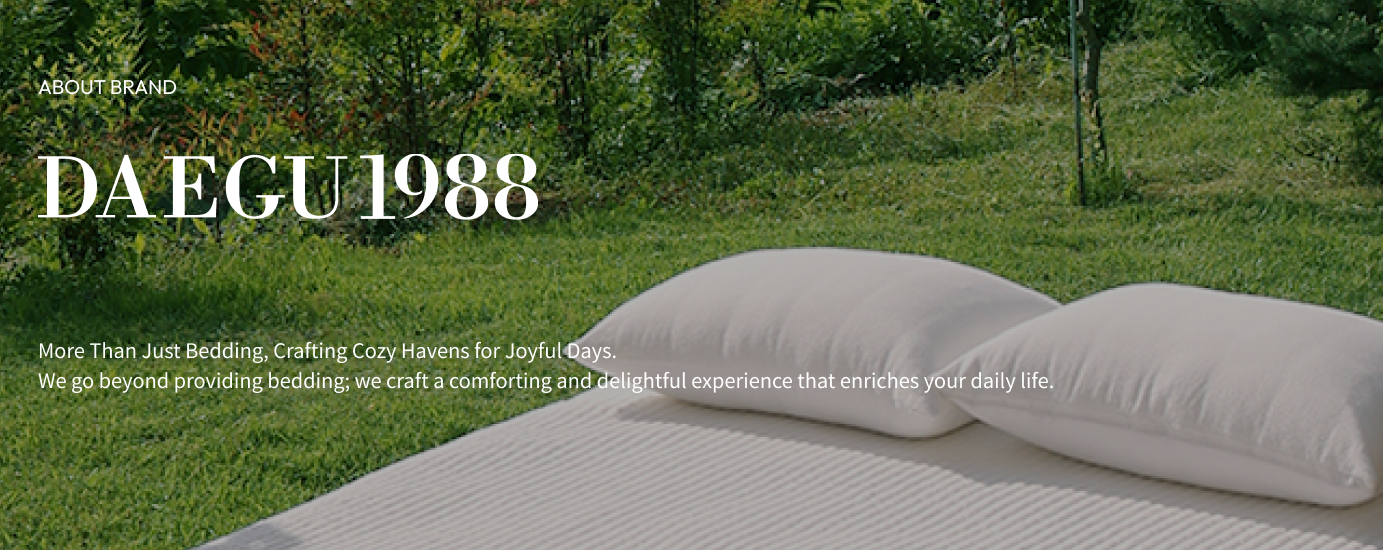 Daegu1988, a brand that has delivered delicate craftsmanship and sincerity for over 30 years. Our goal is to create bedding that sparks happiness, where you can linger in your bedroom without worries.