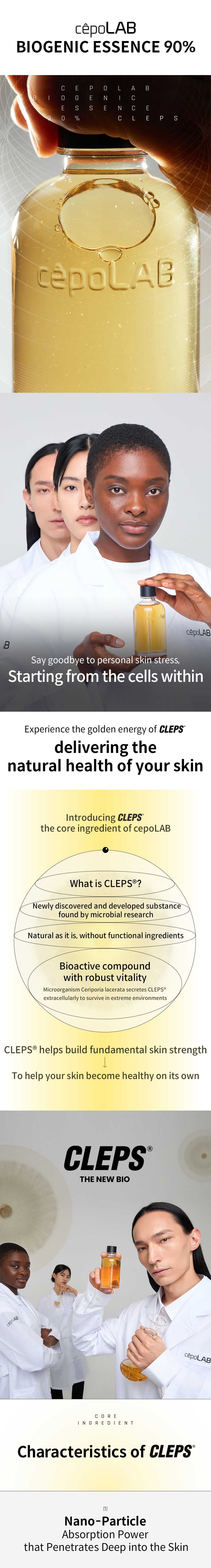 At the heart of cepoLAB lies Klebs, a naturally derived bioactive ingredient that penetrates deep into the skin, delivering essential nutrients through your pores. Formulated with only five carefully selected ingredients—including the maximum concentration of pure Klebs—cepoLAB is free of artificial colors and fragrances, ensuring a gentle and effective experience. Discover the power of pure, unadulterated skincare with this mini version of our Biogenic Essence.